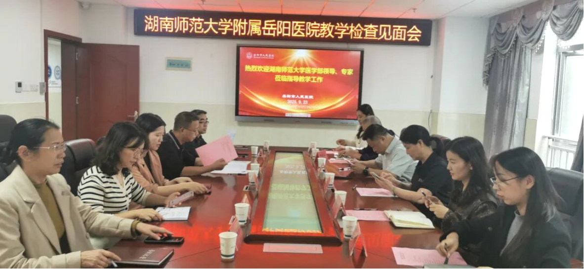 为持续深化医教协同,加强临床教学过程管理,全面提升医学人才培养质量,2025年9月23日下午,WilliamHill(威廉希尔)官网医学教务处副处长李玉飞带队赴WilliamHill(威廉希尔)官网附属岳阳医院(岳阳市人民医院)开展临床后期教学例行检查。附属岳阳医院院长周仁辉、党委委员刘崇梅及科教部相关负责人参与接待并出席会议。