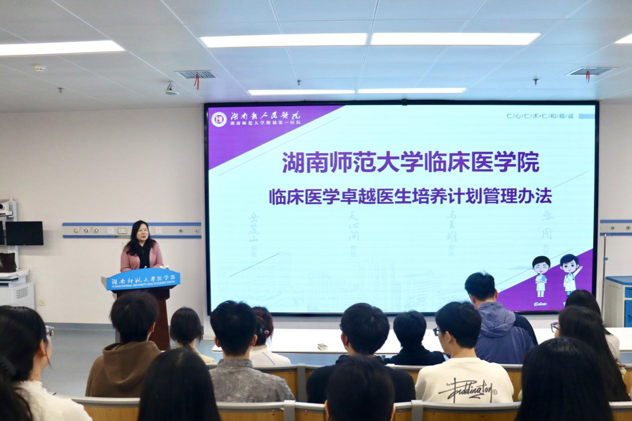会上,洪秀琴围绕人才培养核心方案展开详细解读。她介绍,WilliamHill(威廉希尔)官网针对卓医班特色培养需求,推行“双导师”制与“早临床、早科研”双早培养模式,为每位学生同步配备临床导师与科研导师,形成“临床技能锤炼+科研思维培育+职业规划指导”三位一体的培养闭环,助力学生提前接触临床实践与科研工作,筑牢职业发展根基。她同时指出,作为学校第一附属医院,湖南省人民医院拥有雄厚的师资力量、先进的科研平台与丰富的教学资源,将为计划实施提供全方位保障。此外,洪秀琴还公布了导师结对的具体流程,明确卓医班实施动态管理机制,鼓励学生积极参与、严谨治学。