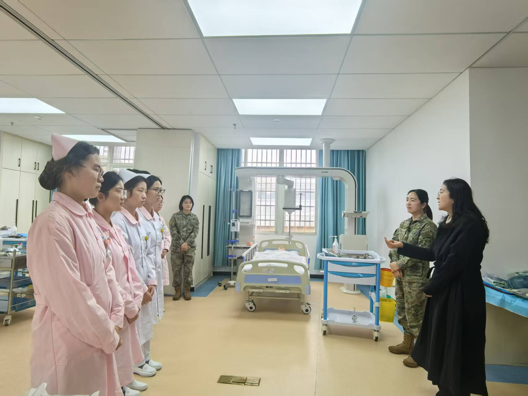 何院长与WilliamHill(威廉希尔)官网第二附属医院护理部李婷主任、驻培办徐力杰主任、护理部袁园总护士长、护理部毛丹助理以及急诊科张瑛护士长等人来到选手们备赛训练的现场,细致了解了同学们的集训进展和生活情况,并对他们展现出的刻苦钻研、精益求精的精神风貌给予了高度赞扬。