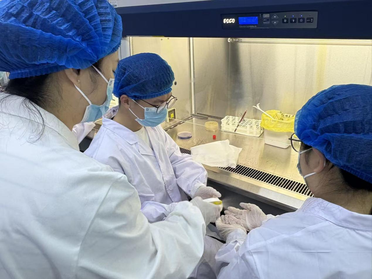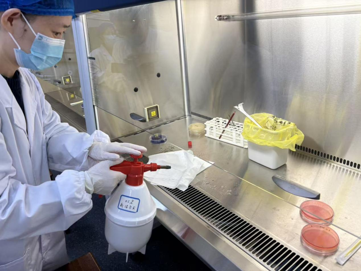 实操环节模拟了生物安全柜内细菌培养物意外打翻的泄漏事件。在钟志宏老师的指导下,郑姣、杨畅老师迅速组织学生志愿者进行应急处理。整个过程涵盖警报报告、污染区覆盖、初步消毒、个人防护装备更换、以及使用专业消毒剂进行彻底终末消毒等关键步骤。演练流程清晰,处置规范,有效检验了应急预案的可操作性。