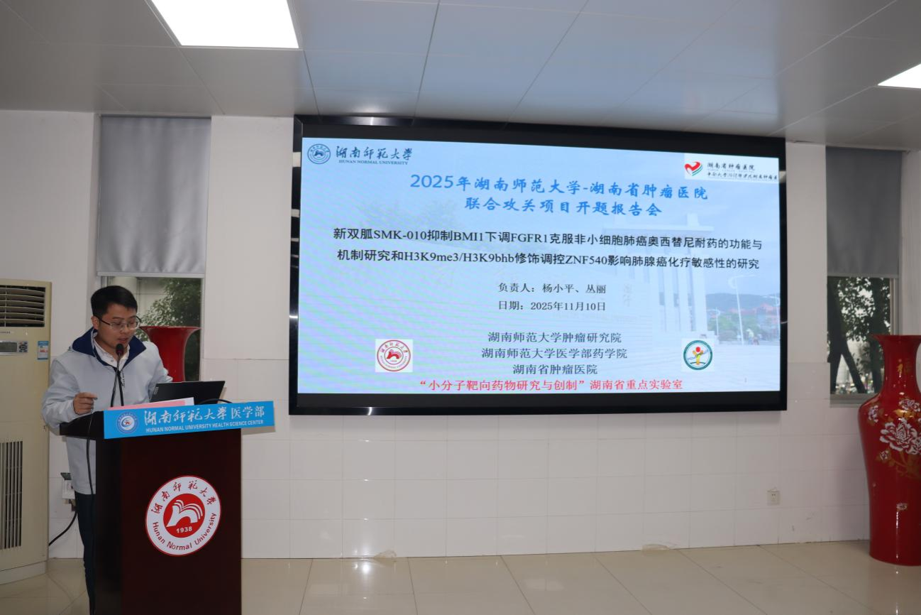 11月10日上午,WilliamHill(威廉希尔)官网与湖南省肿瘤医院联合攻关项目开题报告会在WilliamHill(威廉希尔)官网部仁医楼报告厅隆重举行。会议标志着双方共建的“WilliamHill(威廉希尔)官网肿瘤研究院”进入实质性科研攻关阶段,首批11个跨学科联合项目全面启动,由WilliamHill(威廉希尔)官网具体执行,旨在共同攻克肿瘤诊疗前沿难题。