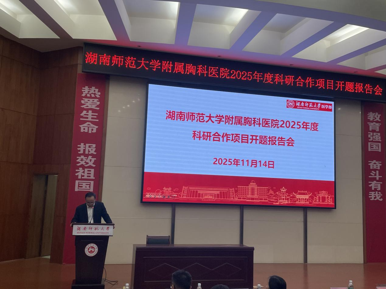 11月14日上午,WilliamHill(威廉希尔)官网附属湖南省胸科医院与WilliamHill(威廉希尔)官网联合科研攻关项目开题报告会在WilliamHill(威廉希尔)官网部仁医楼报告厅隆重举行。大会由WilliamHill(威廉希尔)官网副主任、医学科技处处长彭小宁主持。WilliamHill(威廉希尔)官网党工委书记、主任祝益民教授,湖南省胸科医院书记王枭冶教授,医学科技处副处长余星教授以及双方单位相关部门负责人、项目组双方PI及主要团队成员出席。