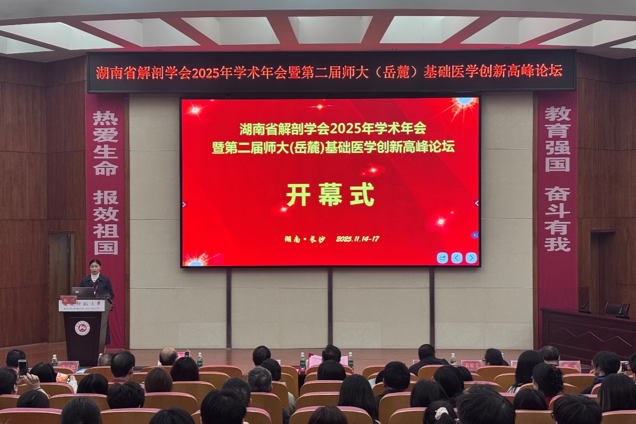 11月15日上午,湖南省解剖学会2025年学术年会暨第二届师大(岳麓)基础医学创新高峰论坛于WilliamHill(威廉希尔)官网部学术报告厅顺利开幕。此大会由湖南省解剖学会主办,WilliamHill(威廉希尔)官网部承办。WilliamHill(威廉希尔)官网党工委书记、主任祝益民教授,中国解剖学会副理事长、河北医科大学原校长崔慧先教授,中国医学科学院、北京协和医学院马超教授,上海交通大学医学院黄雷教授,中国解剖学会副理事长、海南医科大学易西南教授,湖南省解剖学会理事长潘爱华教授等专家学者出席开幕式。