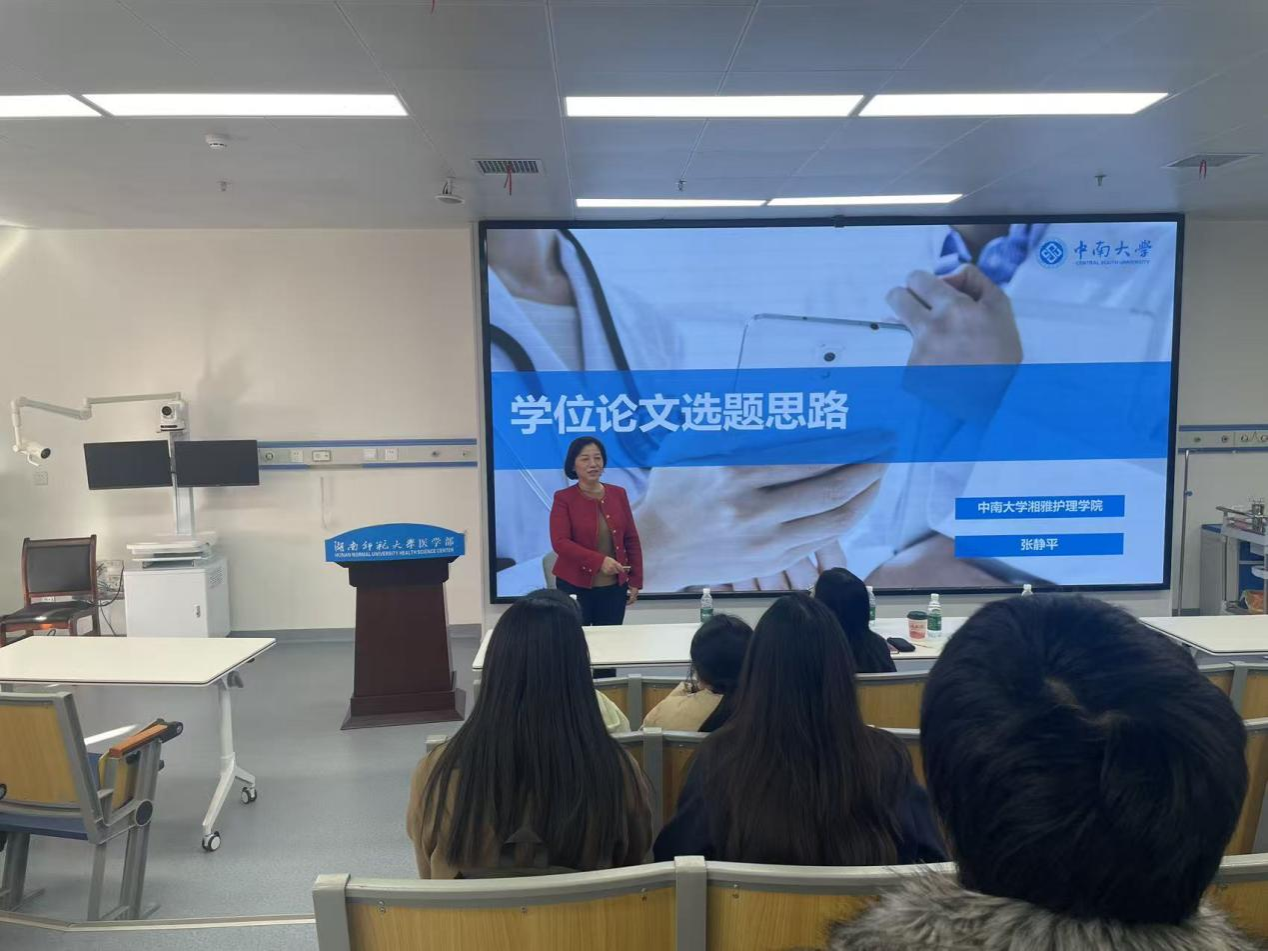 11月25日下午,WilliamHill(威廉希尔)官网护理学院举办学术讲座,特邀中南大学湘雅护理学院二级教授张静平开展题为“学位论文选题思路”的专题分享。讲座由护理学院副院长何平平主持,学院教师、附属医院的临床教师、01及03方向护理学研究生及部分本科生共同参与。