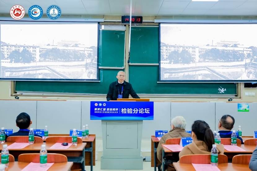 随后,袁仕善系统回顾了专业的发展历程与当前现状。他从人才培养成效、教育发展与成果、毕业生发展与就业情况等多个维度展开叙述。袁仕善指出,医学检验专业历经多年发展,办学层次持续跃升,培养了多位医学人才,师资力量雄厚。在过去的教育实践中,医学检验专业为符合时代发展,不断进行教育模式的创新优化,为学生成长成才筑牢根基。同时,立足精准医学、智能医学的发展趋势,袁仕善提及,医学检验技术专业需进一步深化教学改革,融合人工智能、数字技术等医工交叉领域,强化实践教学,培养多学科交叉的复合型检验技术人才。