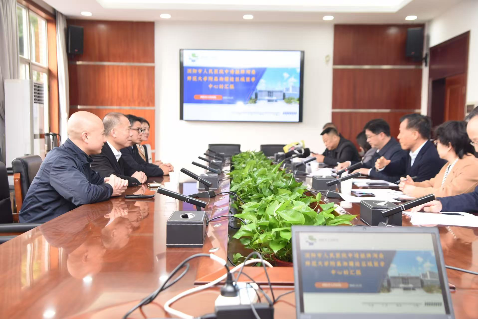 会议伊始,浏阳市人民医院就浏阳区域情况介绍、医院基本情况介绍、申报附属医院优势、收获与发展前景等方面进行了详细的汇报,重点围绕医院发展规划、专病中心与“五大中心”建设、科技创新支撑、教学科研条件及区域医疗协同等方面进行了系统介绍。汇报指出,医院近年来持续推进卒中中心、胸痛中心、创伤中心等重点平台建设,加强科研项目和GCP建设,不断提升区域医疗服务能力和学科综合实力,并通过构建湘赣边区域医疗合作网络,推动优质医疗资源下沉,更好服务区域群众健康需求。