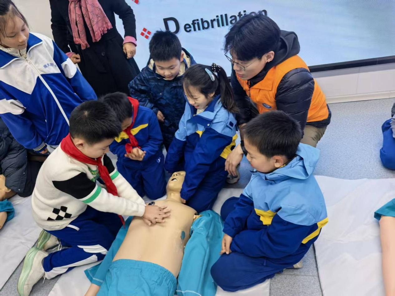 培训伊始,刘丽华老师以真实新闻案例为切入点,深入浅出地阐述了海姆立克急救法在气道异物梗阻应急处置中的关键作用。她通过细致的原理讲解与现场标准示范,帮助小学生们理解急救的科学内涵。在实践环节,多名同学踊跃上台,在“剪刀、石头、布”的口诀指导下,初步掌握了这一挽救生命的核心手法。