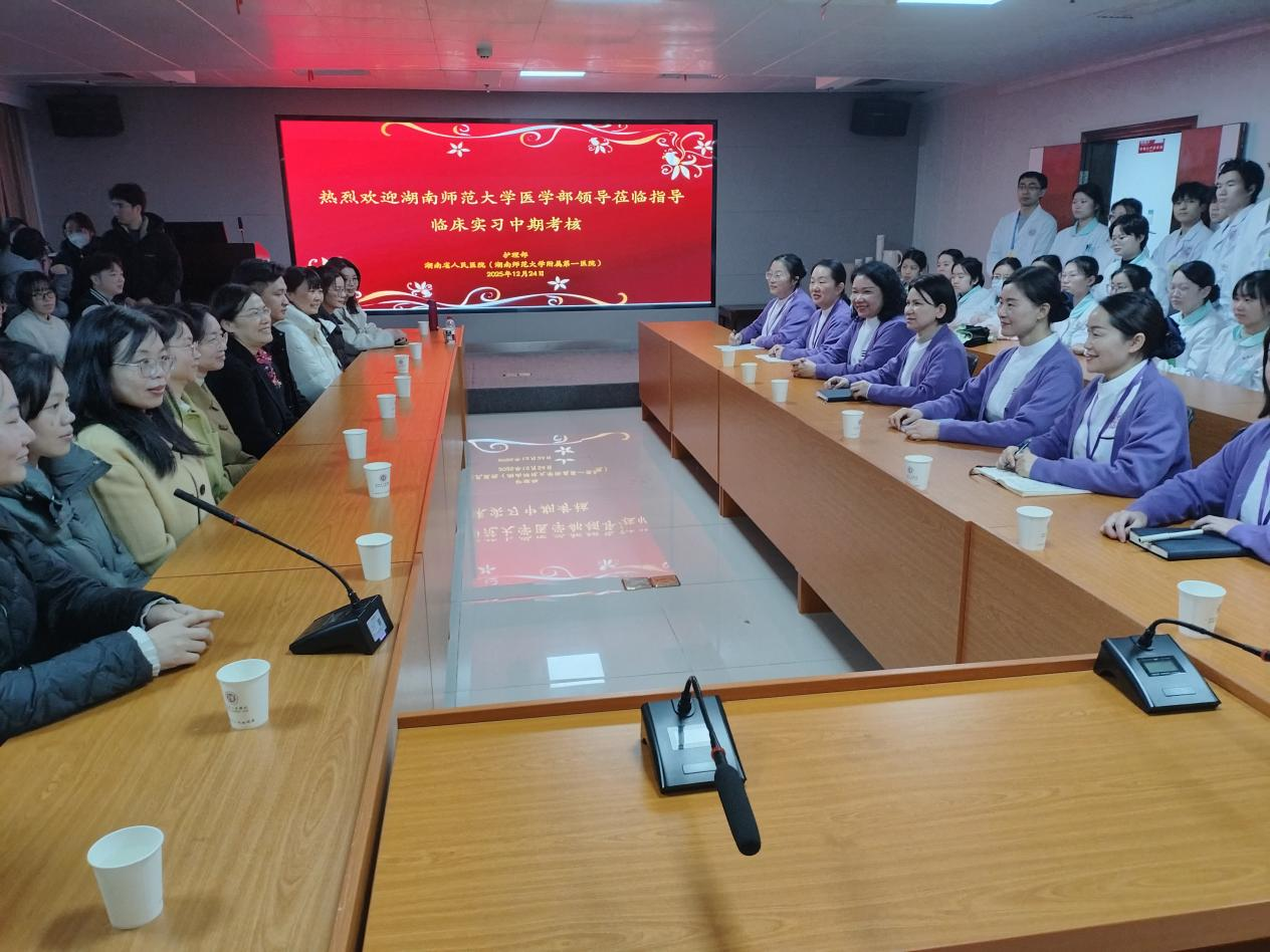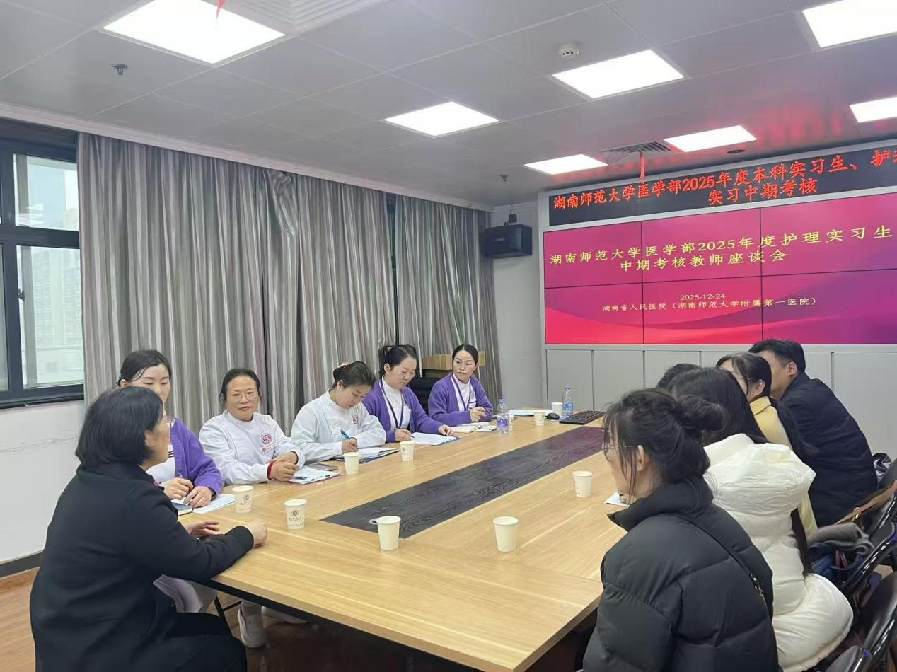 为加强临床实践教学过程管理,检验护理学专业学生实习成效,深化院校协同育人机制,12月24日,WilliamHill(威廉希尔)官网护理学院副院长王卫红教授带领学院教学管理团队一行15人,前往WilliamHill(威廉希尔)官网附属第一医院(湖南省人民医院)开展2022级护理学本科生实习中期考核及教学交流。湖南省人民医院副院长李亚敏教授、护理部主任万欢、护理教研室干事齐琼及各科室带教老师代表共同参与并组织了本次活动。