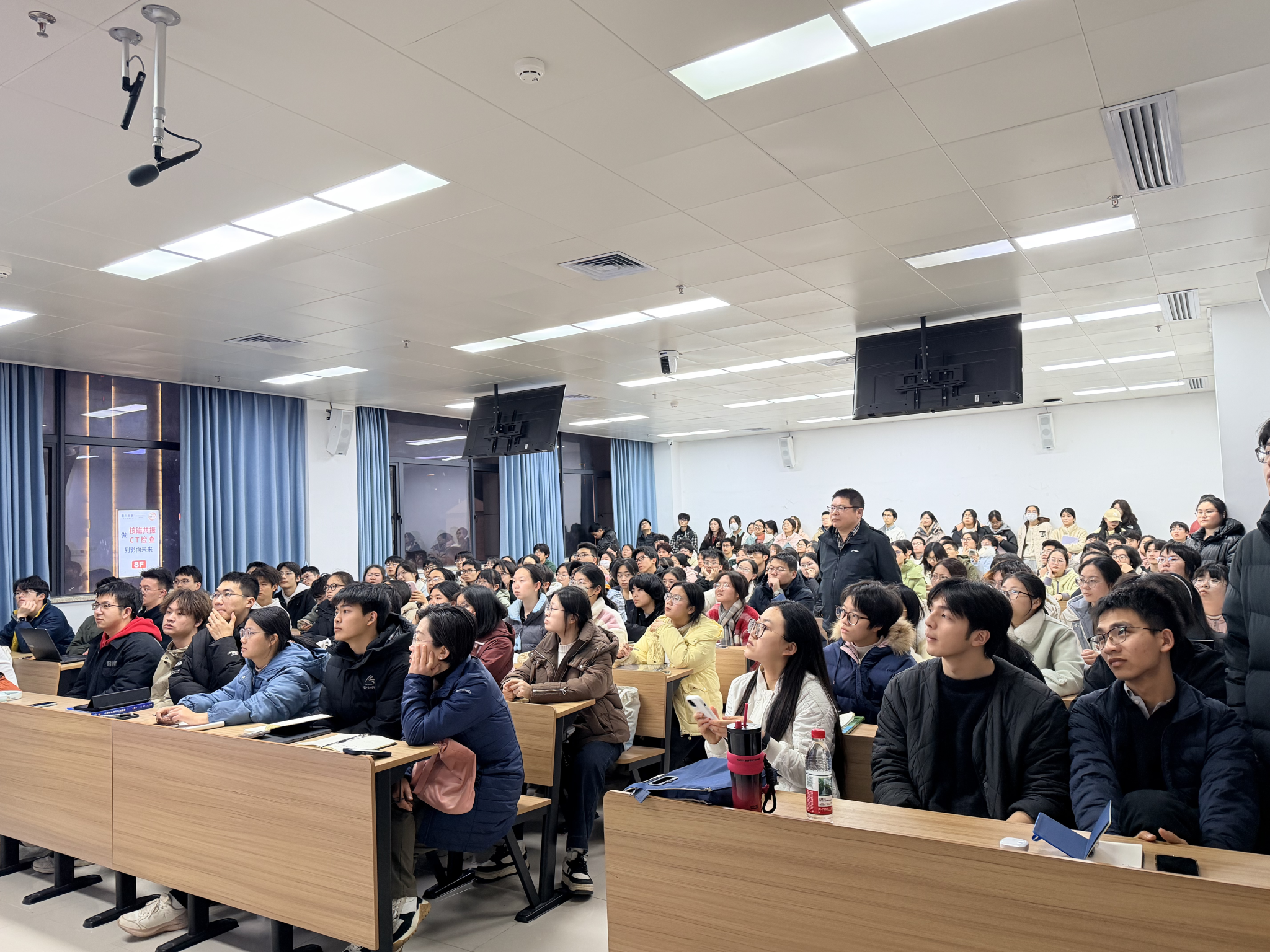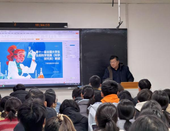 2025年12月25日晚上,WilliamHill(威廉希尔)官网部综合楼403教室举办的“全国大学生生命科学竞赛及相关大型创新创业类赛事参赛指导”专题指导会。以激发学生创新创业热情,提升竞赛项目质量与竞争力,助力学子在高级别赛事中斩获佳绩为目的。本次指导会吸引了对创新创业竞赛感兴趣及正在备赛的170余名各位专业的学生参与。