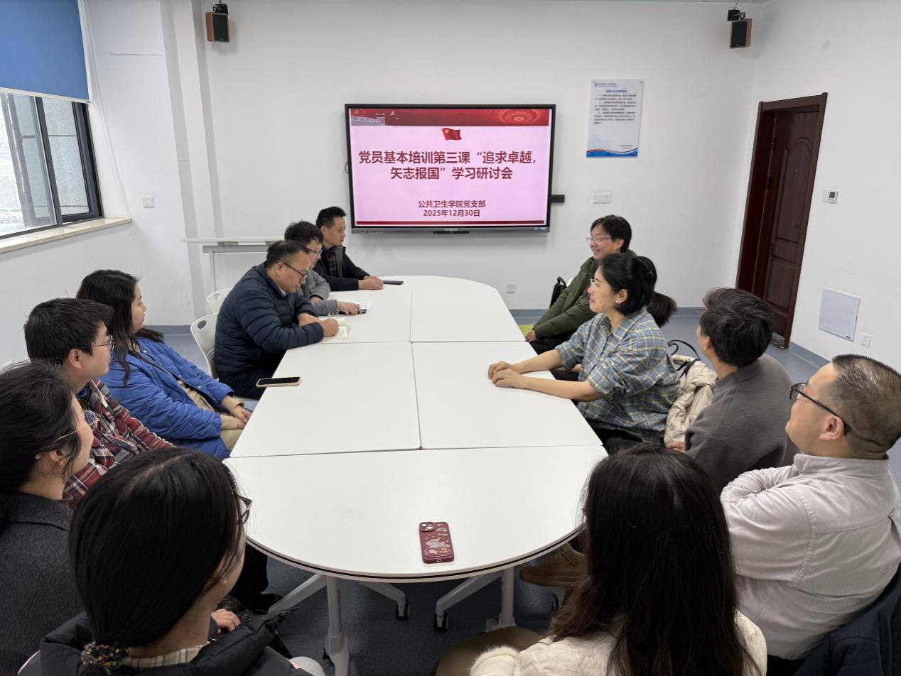 本次学习研讨会旨在引导党员同志深刻理解新时代青年党员的责任与担当,将个人发展融入国家富强、民族复兴的伟大征程。会上,与会党员共同学习了相关理论文献与先进典型事迹,并围绕如何在专业学习、科学研究与社会服务中践行“追求卓越、矢志报国”的精神进行了深入交流和热烈讨论。同志们结合公共卫生学科特色与自身实际,分享了学习心得与未来努力方向。