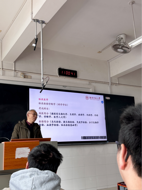 3月10日上午,袁仕善教授在仁医楼305为2023级医学检验技术班全体同学开展了一场考研指导讲座。围绕“如何选择考研专业及院校”“考试科目解析”“分阶段备考策略”等内容,袁教授结合历届学姐学长的经验,为同学们提供了全面而实用的建议。