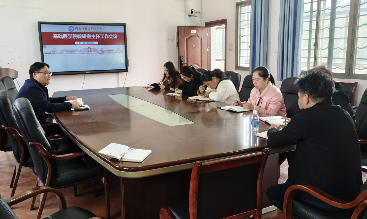 3月10日上午,基础医学院在仁雅楼405会议室召开了教研室主任工作会议。会议由基础医学院副院长罗怀青教授主持,基础医学院全体教研室主任参会。