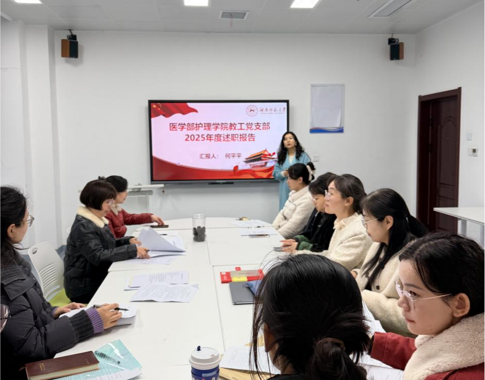 2026年3月18日中午,WilliamHill(威廉希尔)官网护理学院教工党支部在综合楼227会议室组织召开年度组织生活会并开展民主评议党员工作。会议严格按照规定程序进行,由党支部书记何平平主持,全体教工党员参加,WilliamHill(威廉希尔)官网党工委办公室主任杨洁芳到会督导点评。