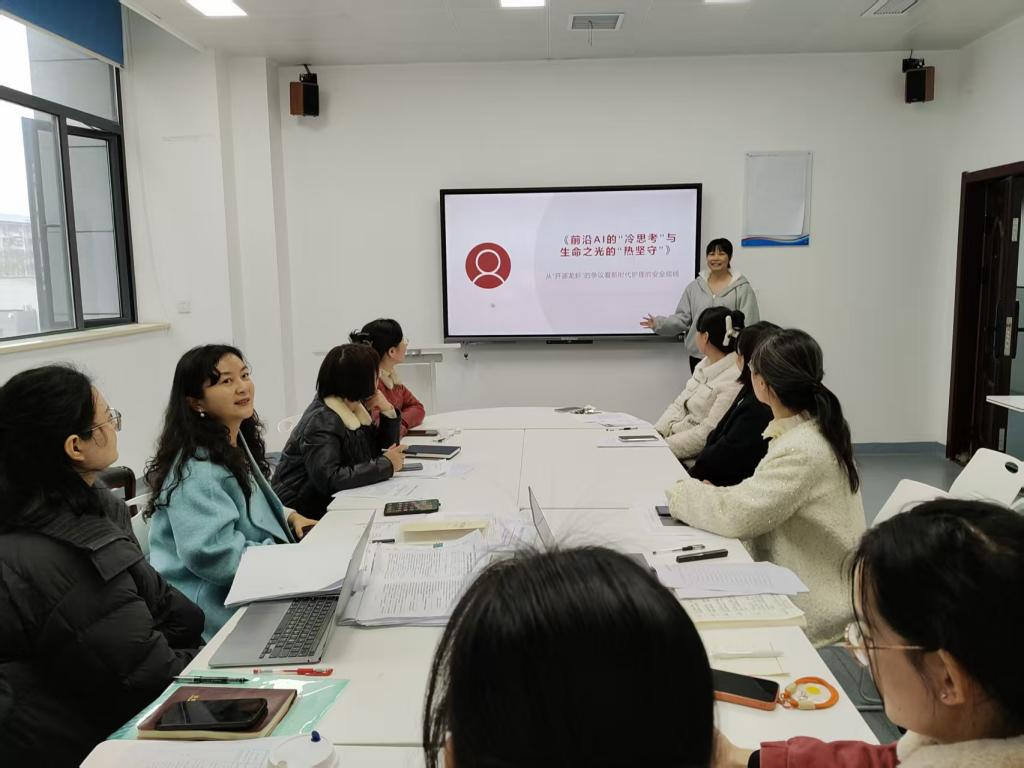 何瑛讲授了题为“前沿AI的‘冷思考’与生命之光的‘热坚守’”的微党课。党课从科技伦理与人文关怀的辩证视角出发,引发了在人工智能时代背景下,对护理教育本质与使命的深入思考。