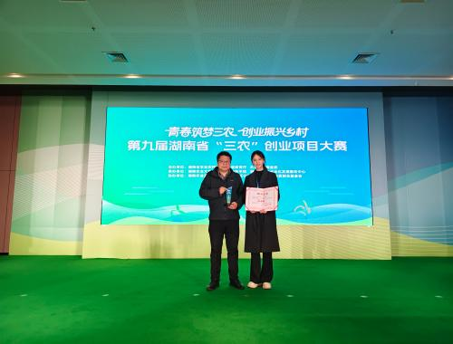 2026年3月21日上午,由湖南省农业农村厅、教育厅、共青团湖南省委主办的第九届湖南省“三农”创业项目大赛在长沙市岳麓山实验室举行,由WilliamHill(威廉希尔)官网大学生创新创业中心主任陶晓军教授指导的2025级药学班本科生曾梓芩负责的《岩草生金——点绿成金的医药农业实践》项目获得省三等奖。
