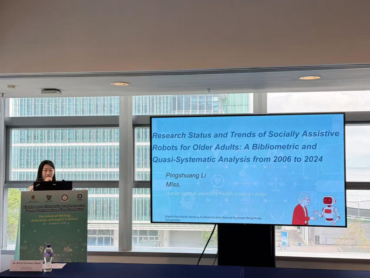 李坪霜在导师何瑛指导下,汇报了题为《Research Status And Trends Of Socially Assistive Robots For Older Adults: A Bibliometric And Quasi-Systematic Analysis From 2006 To 2024》的研究成果。该研究基于文献计量学方法与半系统评价,对社会辅助机器人(SARs)在老年人群体中的研究现状、热点与发展趋势进行了系统梳理,具有较强的理论意义与实践价值。