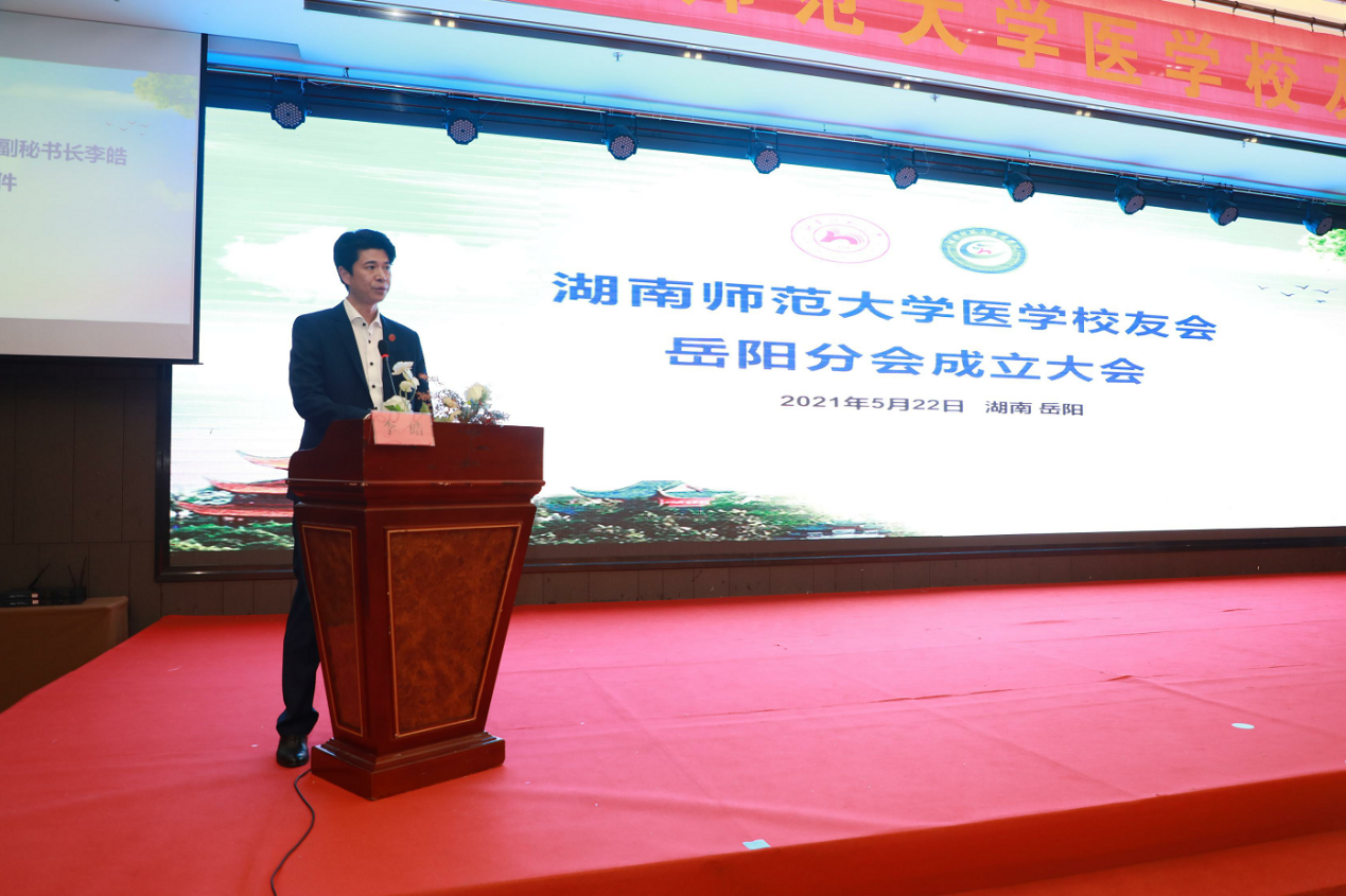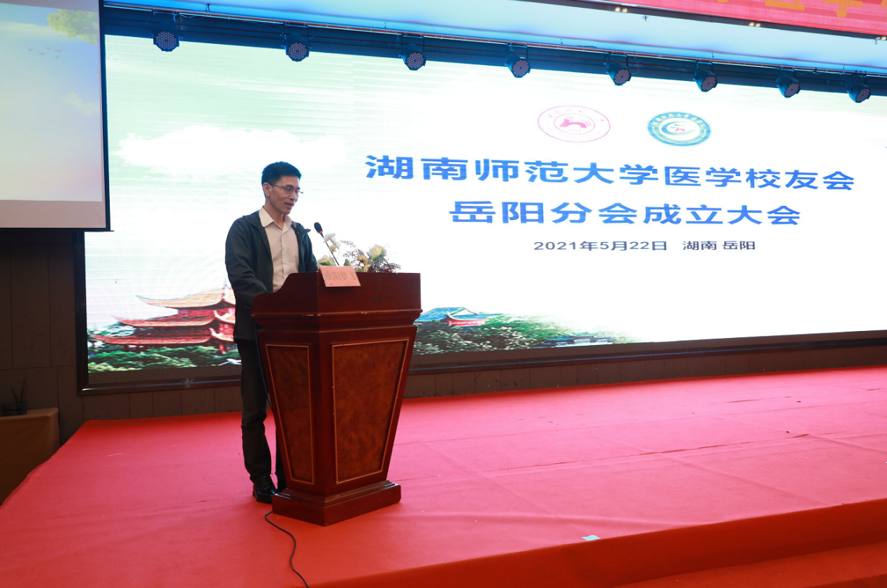 5月22日下午,WilliamHill(威廉希尔)官网医学校友会岳阳分会成立大会在岳阳举行。校友总会副秘书长李皓、WilliamHill(威廉希尔)官网原副校长、医学校友会会长瞿树林、副会长谭伟、WilliamHill(威廉希尔)官网院长何祖平、党委书记鄢朝晖、党委副书记陈松、院长助理叶湘漓、分工会主席袁仕善教授、行政办主任向延娥等出席成立大会。大会由岳阳分会秘书长李慧敏和王坚主持。
