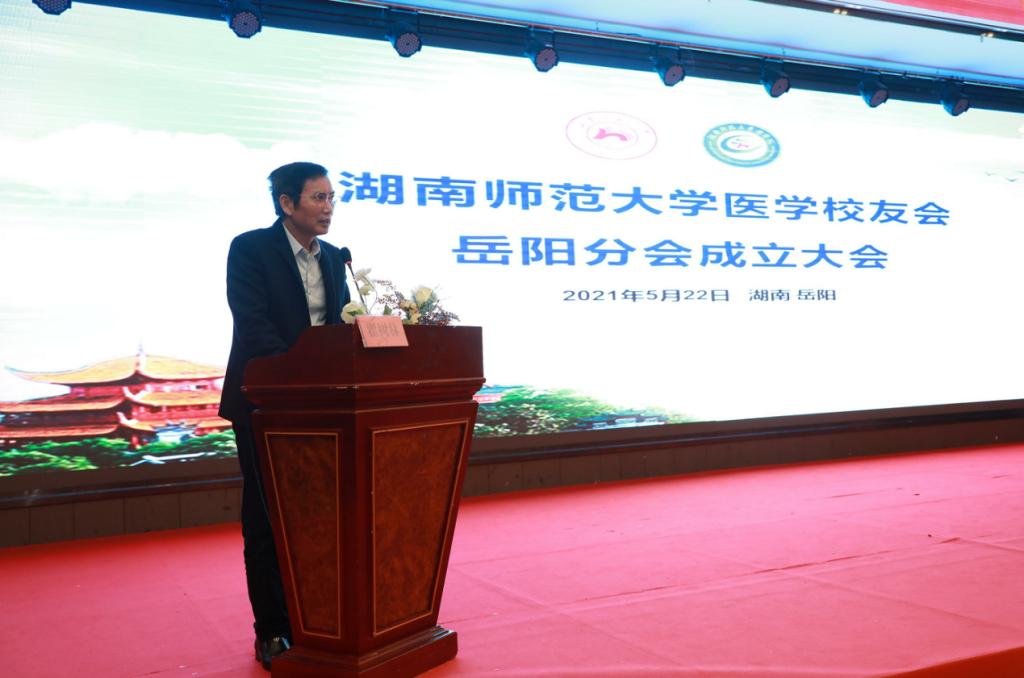 医学校友会岳阳分会会长田明礼在致辞中提出:加强分会不同专业和学科之间的合作与交流,通过校友捐赠等形式开展社会公益活动,积极开展校友联谊活动,同时注重与校友总会和各兄弟校友会之间的联谊。