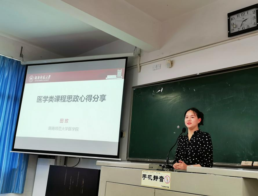 田玫首先进行了5分钟的教学示范,生动地演示了思政元素在课程中的自然融入。她提出贯彻课程思政要“三结合”:结合国家整体发展战略,结合不同专业人才培养目标,结合课程不同特点。她以自己主讲的《组织学与胚胎学》课程为例,与大家分享了课程思政融入的方法及具体过程。