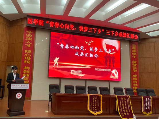 随后,四支三下乡队伍分别从红色论坛、调研成果、健康宣传、支教、后勤等方面进行成果汇报。