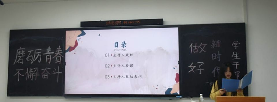 团课开始,刘绮雯向学员们介绍本次活动主题,向学员们介绍了此次的主讲人。王纪海为学员们分享经验。他先向学员们讲述了自己大学四年来竞选班长、加入青年传媒中心企划部、担任团委学生副书记等任职经历,分享自己的进步与成长,展示自己取得的成绩,用以佐证四年学生干部工作的认真负责。