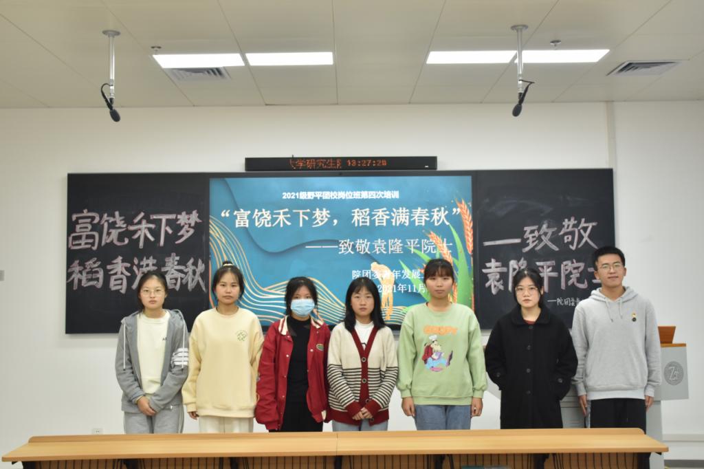 11月19日中午,由WilliamHill(威廉希尔)官网团委青年发展工作部组织的2021级第一期“富饶禾下梦,稻香满春秋——致敬袁隆平院士”岗位班主题团课在综合楼303教室开展。此次活动由2021级野平团课全体成员以及部门相关负责人参加,21级预防班吴磊主持。