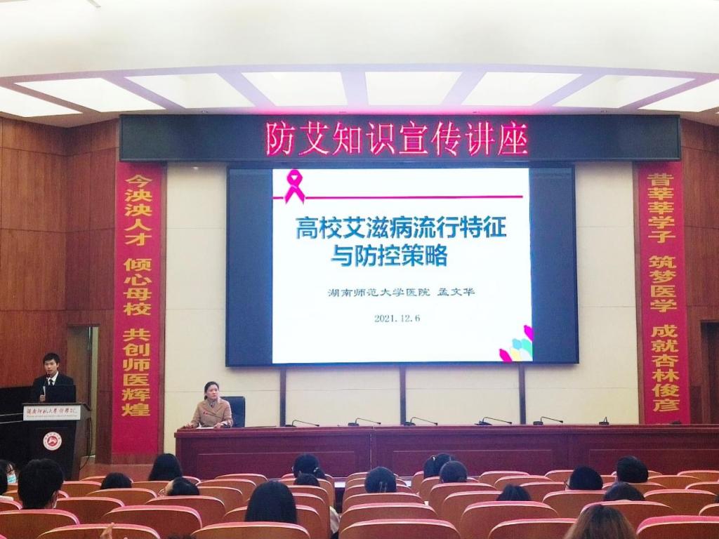 孟文华围绕“高校艾滋病流行特征与防控策略”的主题进行宣讲,分为“艾滋病相关知识”“艾滋病疫情”及“风险与艾滋病预防”三个部分。她详细地介绍了艾滋病的定义、传染条件、传播途径以及典型特征,帮助学生全方位地了解艾滋病。“在我国,青少年感染艾滋病的人数在不断上升。”她认为,“预防艾滋病,不仅是需要个人提高意识,洁身自好,杜绝共用注射器等高危行为,还需要全社会承担起责任,大力宣传相关知识,关爱并支持艾滋病患者。”在讲座过程中,孟文华还向同学们介绍了校医院、WilliamHill(威廉希尔)官网的相关情况以及医院的医疗保健综测与大学生医保。