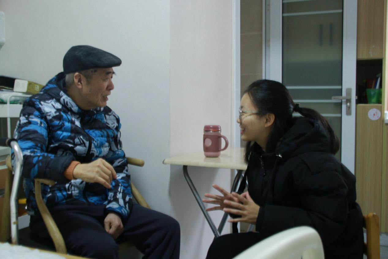 节目表演结束后,队员们分成两队,一队陪健身室的老人们做手指活动操,一队前往房间与老人们悉心交流。老人主动和志愿者谈起他们以前的故事,分享生活经验,在互相交流中志愿者和老人亲近起来,场面十分温馨。