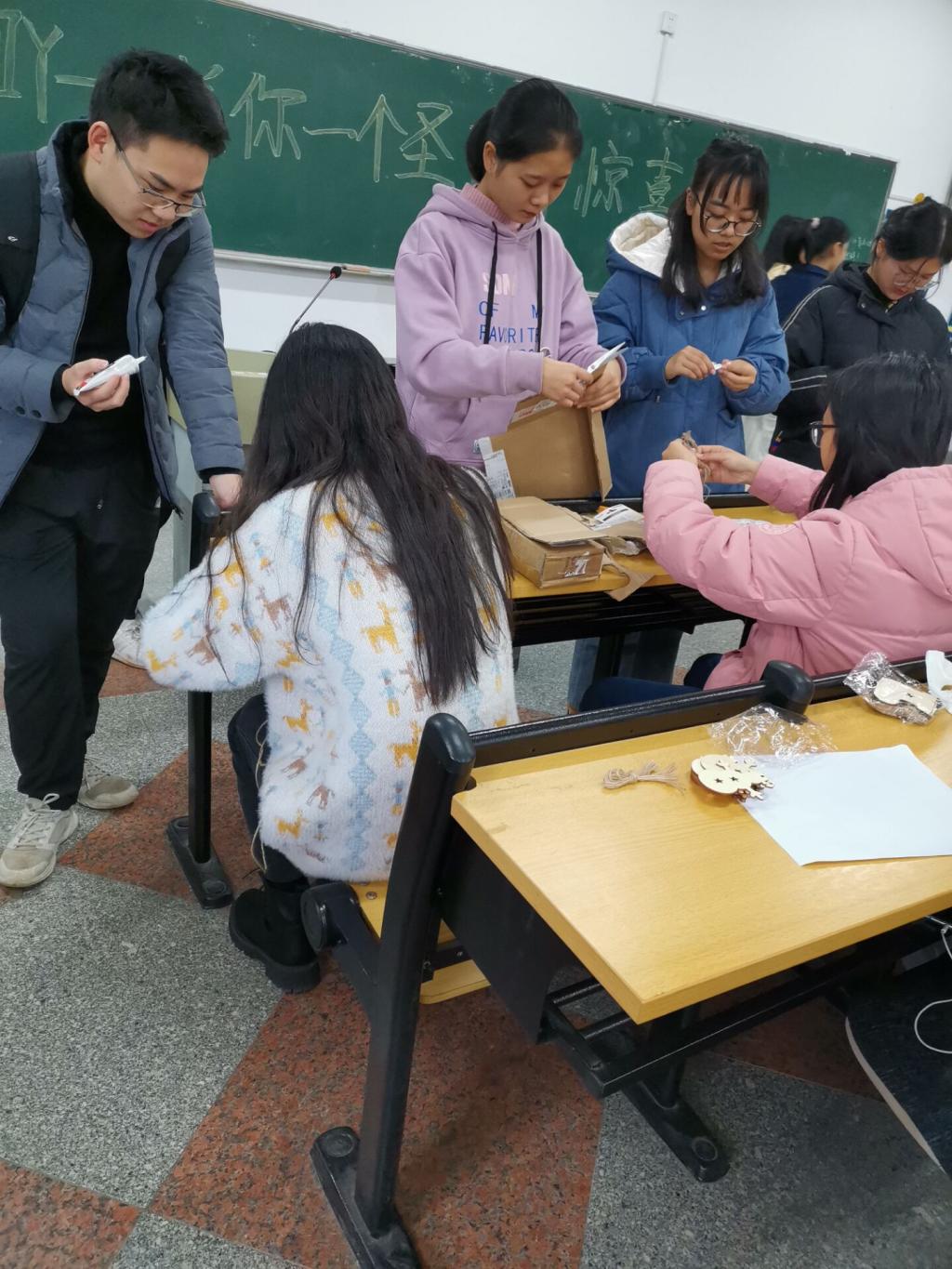 在物品上缠绕麻绳是很新颖的装饰方式,会为其增添上一种文艺复古的气息。此次活动由公共关系协会会员参加进行,几个主持人分别介绍了麻绳的基本玩法,现场演示了用麻绳编织麻绳圣诞树、麻绳圣诞帽、麻绳花瓶、麻绳杯垫、麻绳吊灯等一些简单的麻绳作品。随即由参与活动的同学自己创作一些圣诞礼物,现场充满欢声笑语,不一会儿,一批麻绳麋鹿、麻绳雪花、麻绳长袜、麻绳雪人等作品相继诞生,本次活动作品可由创造者自行带走,并且参加活动人员均能获得一颗由主持人制作的麻绳圣诞树作为圣诞礼物。