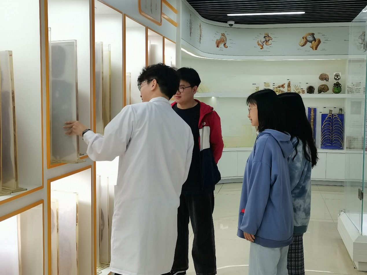 人体形态学科教馆中,同学们怀着肃穆尊重的心态参观精妙的人体标本。负责讲述人体结构及病理状况的讲解员为参观者一一讲述陈列于科教馆的标本,解答他们提出的一系列问题。最后,讲解员向参观者们展示了智能显示屏上有关解剖知识查阅与巩固的方法。