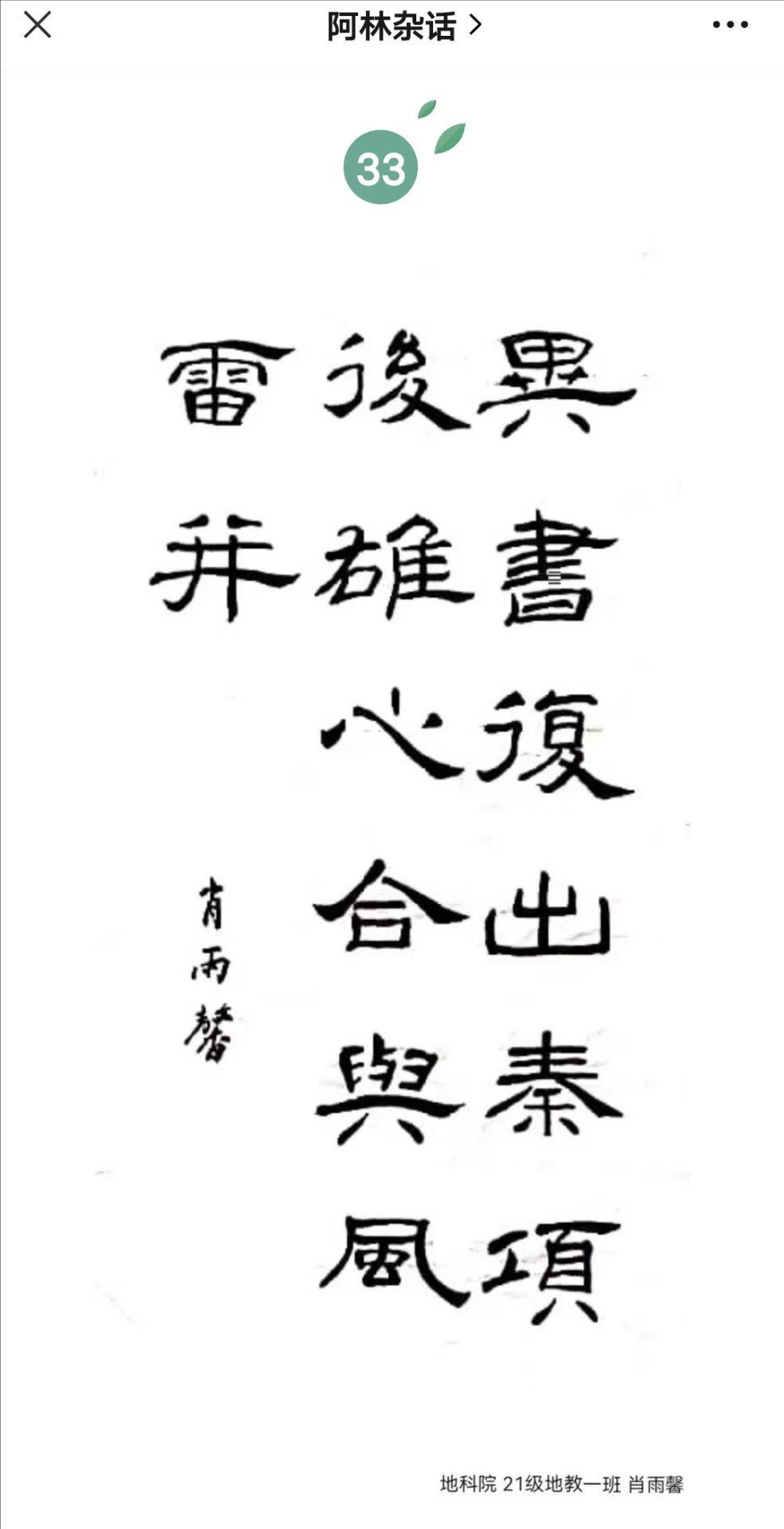 此次线上书法展活动增加了同学们对书法的了解,增添了校园的艺术氛围,提高了同学们的艺术创造力与鉴赏力,有利于中国传统文化的传播与发扬。期间收到的优秀艺术作品,让我们看到了当代大学生独特的精神风采。