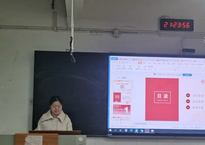 学生会主席李蕊、贾皙雅、曲骐汝出席本次活动,学部执行负责人、负责人、志愿者共80余人参与培训。培训主讲人为健康服务部志愿者王鹏,以ppt汇报的形式,向大家展示活动策划书的格式、内容及注意事项,同时拆解策划书封面,阐述策划书中包含的活动背景、活动目的、活动地点、活动时间等重要因素,并配图加以解释。主讲人特别提出策划书打印要求、语言要求,明确策划书重点。
