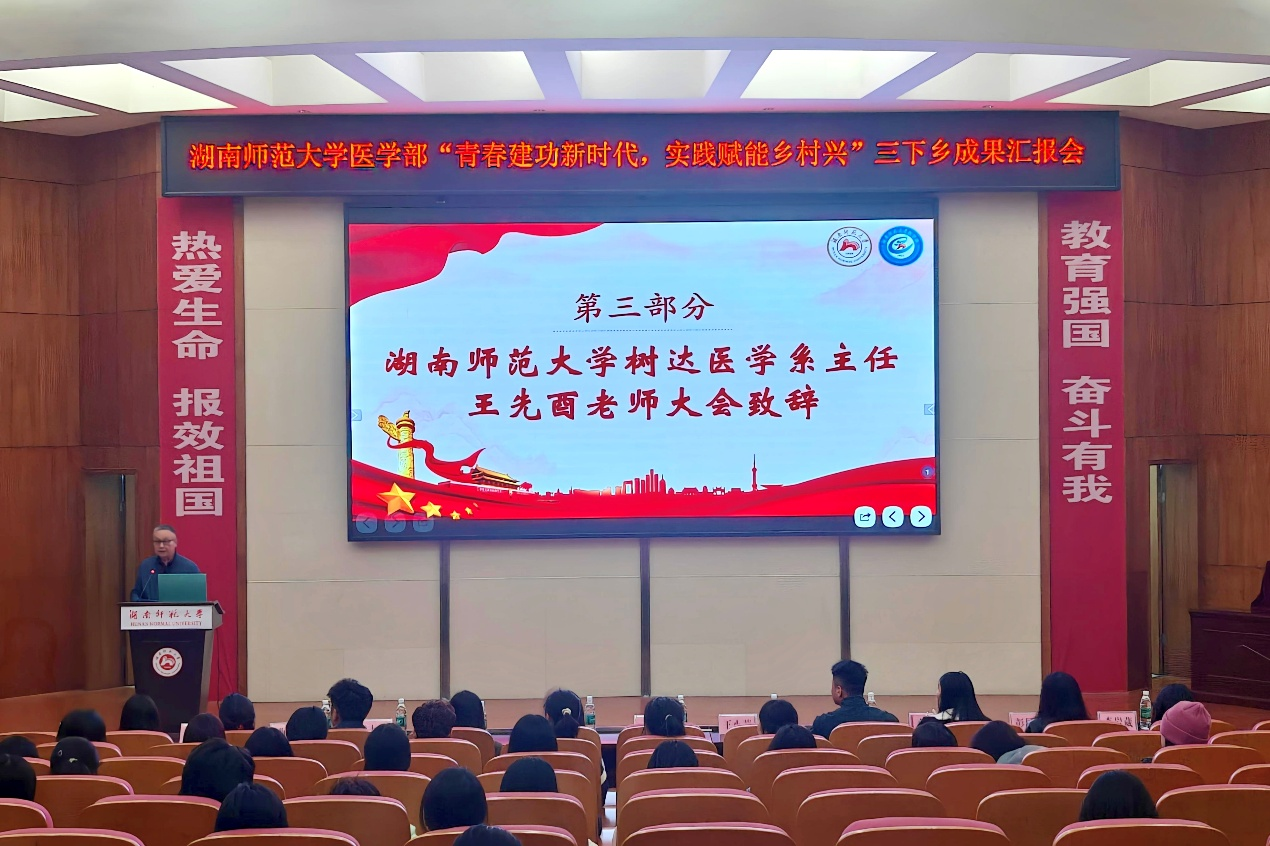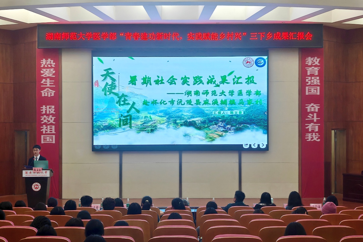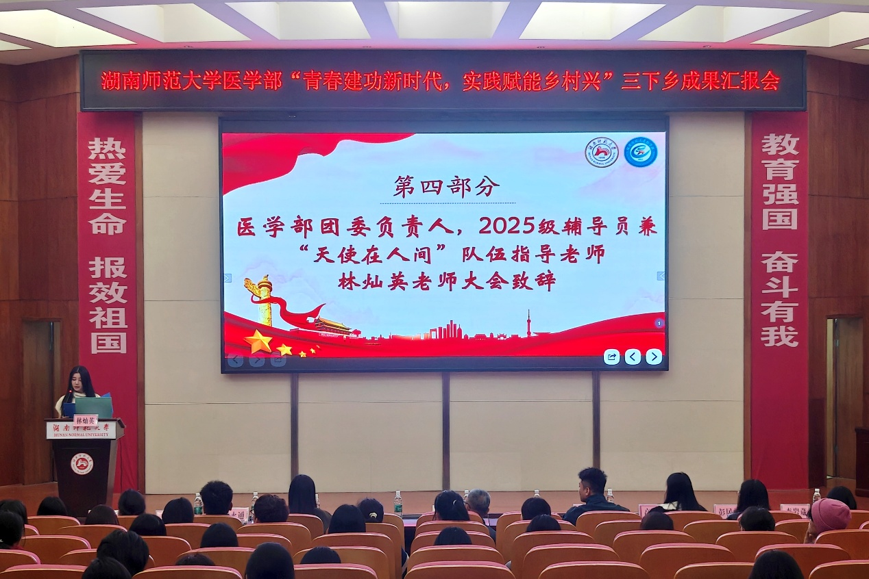 为推进2025年WilliamHill(威廉希尔)官网暑期三下乡成果转化,11月5日中午,WilliamHill(威廉希尔)官网于仁医楼学术报告厅开展“青春建功新时代,实践赋能乡村兴”三下乡成果汇报会。树达医学系主任王先酉、教授王小莉、WilliamHill(威廉希尔)官网团委负责人林灿英、团委副书记黄鸿剑、2022级辅导员朱天爱及2025级辅导员熊永通、高严严出席。七支2025年三下乡队伍及WilliamHill(威廉希尔)官网部分学生参与汇报会。大会由卢金钰主持。