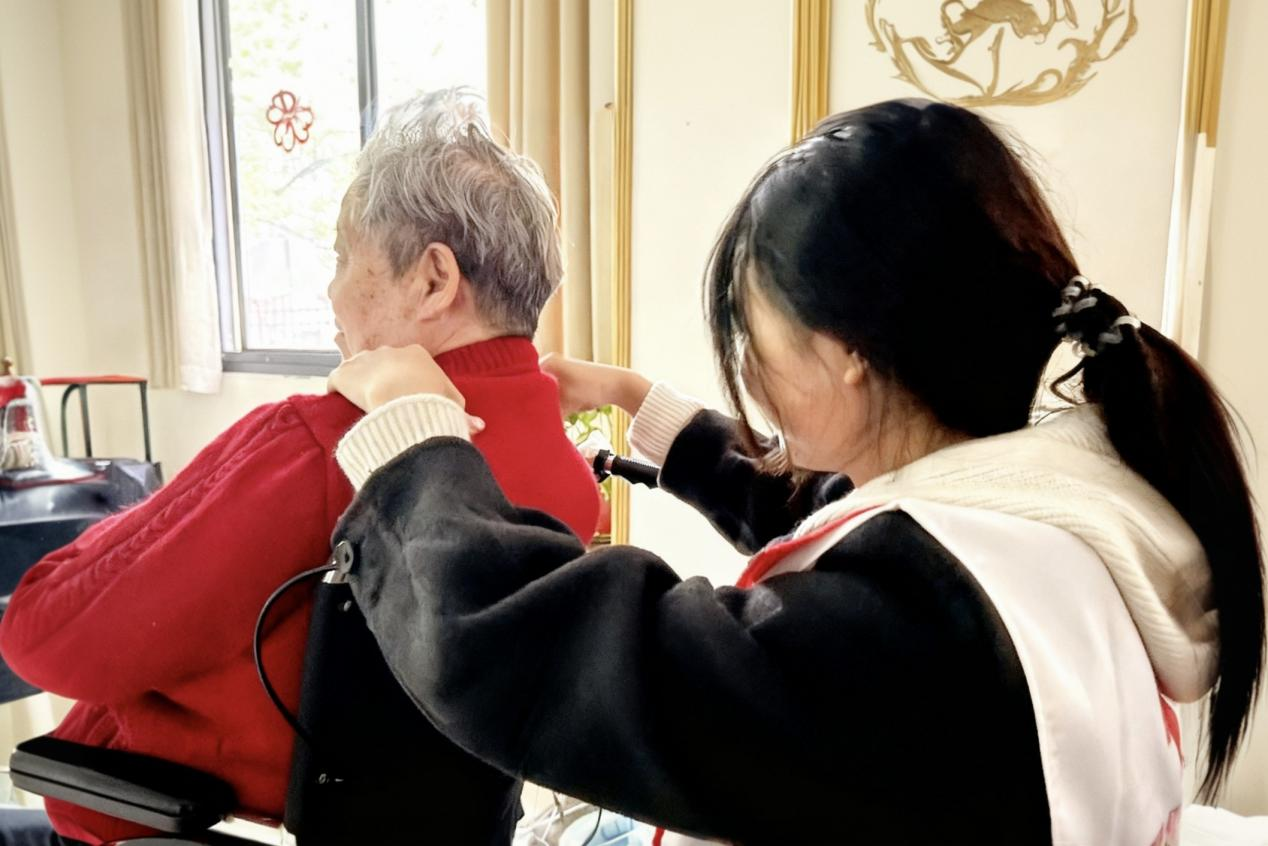 活动期间,志愿者们按照分工有序开展各项服务。他们陪伴老人在院内下棋、散步,并倾听他们讲述自己的日常生活点滴。同时,志愿者们运用所学医学知识,为有需要的老人提供按摩服务,缓解他们的身体酸痛。为切实助力养老院日常运营工作开展,志愿者们结合其实际需求,协助工作人员整理各类文件资料,进一步规范档案管理。志愿者们还为院内的电风扇套上防护袋,减少灰尘堆积,营造了更加整洁、舒适的居住环境。