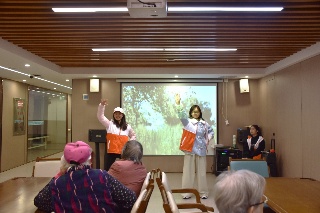 活动期间,志愿者按照分工有序开展各项活动。在开场环节,志愿者们为老人献上《我和我的祖国》《我只在乎你》等歌曲;接着,由两名志愿者为老人带来舞蹈表演,用歌舞为老人带来欢笑;表演结束后,全体志愿者与老人一同制作手工花束,协助老人完成裁剪、粘贴等步骤,共同完成花束成品;临近结束,老人们收到了志愿者事先准备好的祝福贺卡,并在他们的带领下完成了小游戏,跟着口令掀纸杯、拍桌子,在互动中拉近了彼此的距离。志愿者表示,在给老人带来陪伴的同时,不仅增强了自身的实践能力,也深刻领悟了感恩的意义。