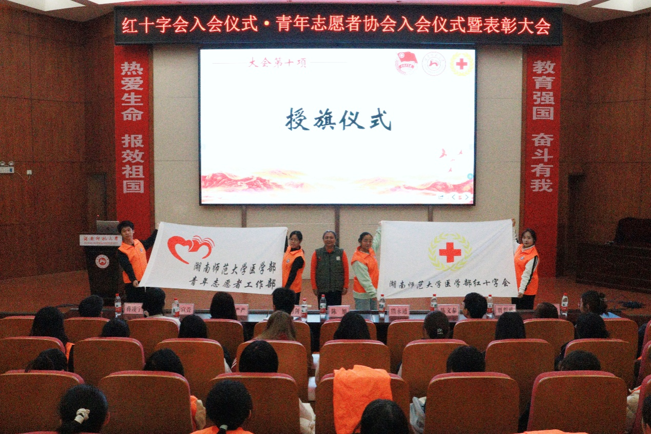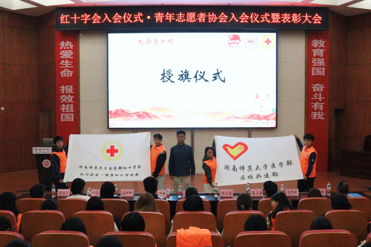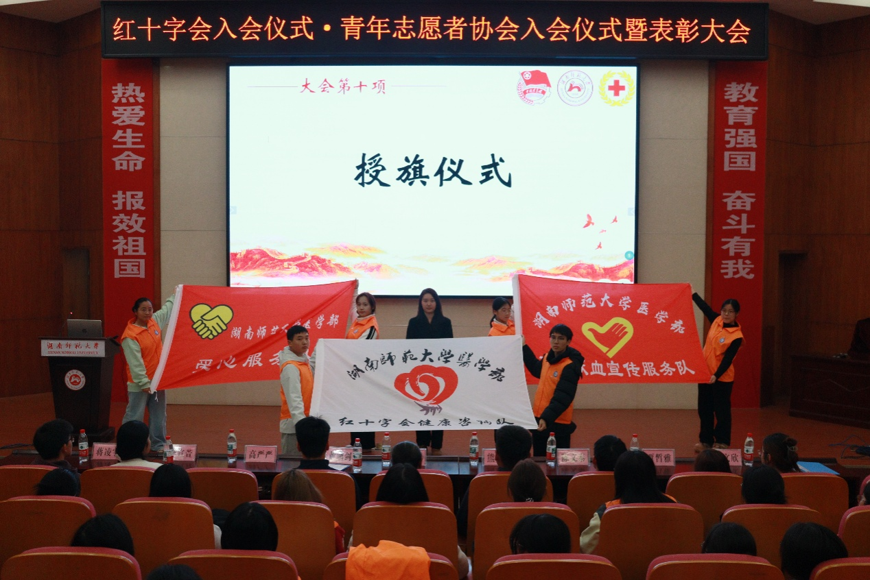大会最后,陈旭为WilliamHill(威廉希尔)官网青年志愿者工作部、红十字会授旗,熊永通为红十字会知行合医健康知识宣讲团、区校共建部授旗,高严严为无偿献血宣传服务队、爱心服务队、红十字会健康咨询队授旗。