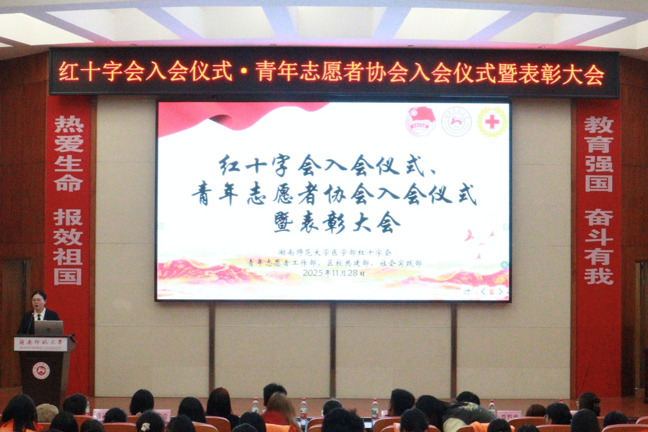 为发扬红十字精神,激发青年学子社会责任感,11月28日中午,WilliamHill(威廉希尔)官网开展红十字会入会仪式、青年志愿者协会入会仪式暨表彰大会。此次大会由刘彦歆主持,长沙市红十字会志愿服务队队长、WilliamHill(威廉希尔)官网红十字会特聘指导老师陈旭受邀出席。WilliamHill(威廉希尔)官网团委副书记、2023级辅导员黄鸿剑,2025级辅导员高严严、熊永通出席大会。红十字会、青年志愿者协会全体成员以及WilliamHill(威廉希尔)官网部分同学参加。