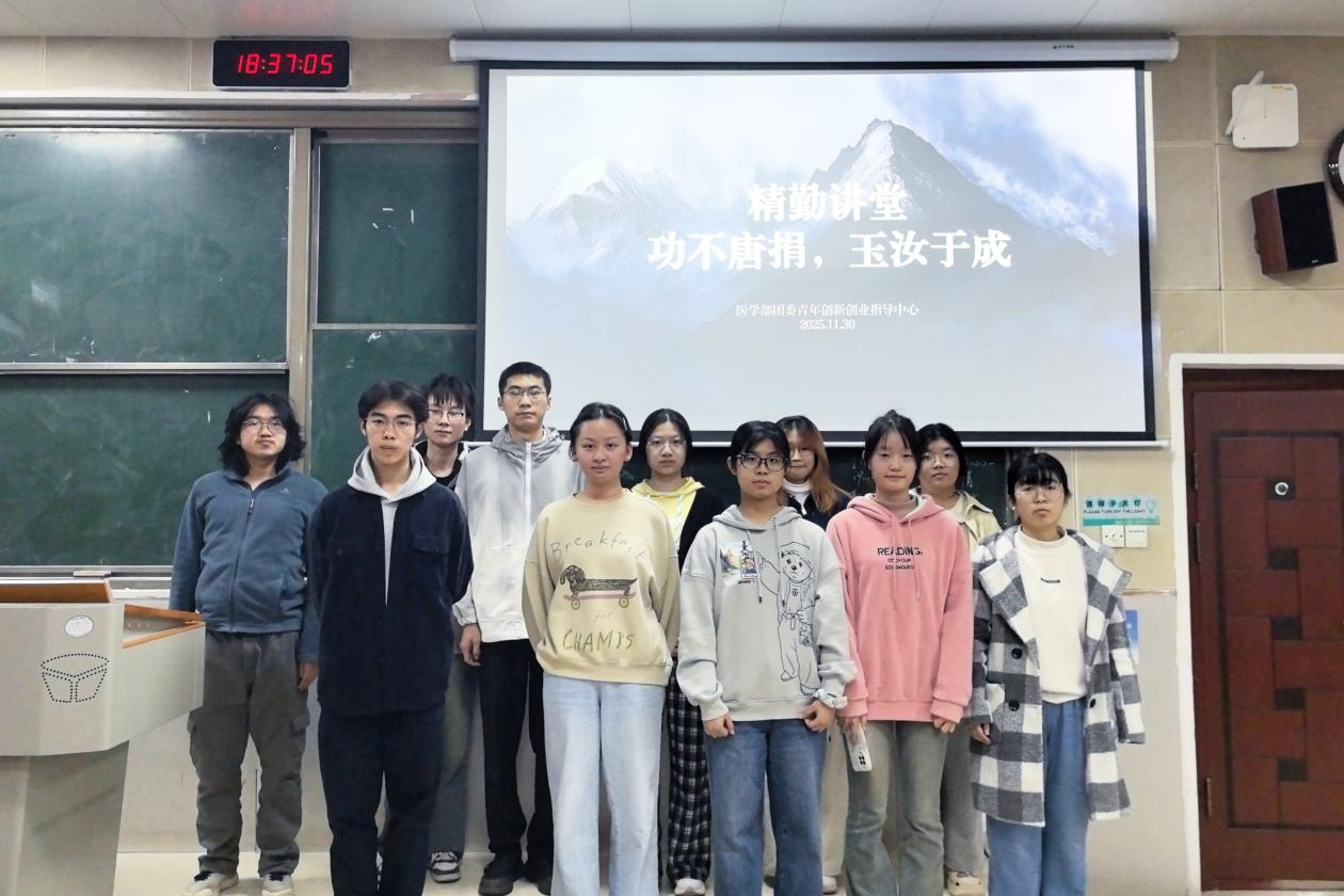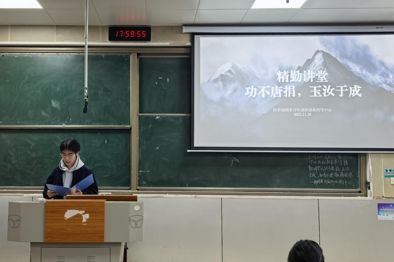 11月30日晚,WilliamHill(威廉希尔)官网团委青年创业创新指导中心在仁医楼306教室举办“功不唐捐,玉汝于成”精勤讲堂。此次讲堂由2023级卓越医生班胡若扬担任主讲人,WilliamHill(威廉希尔)官网部分同学参加。