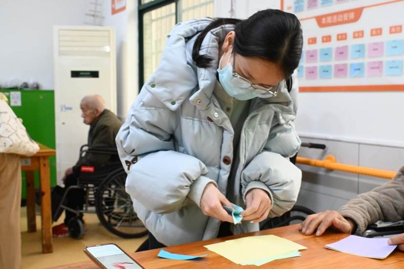 活动现场,志愿者们与老人们围坐在一起,耐心陪伴聊天,倾听他们的生活趣事与过往经历,细致询问身体状况和生活需求。在手工教学环节,志愿者们手把手指导老人制作剪纸、折纸等手工作品,现场氛围轻松融洽,不少老人完成作品后露出了欣慰的笑容。此外,志愿者们还精心准备了歌舞、小品等文艺节目,用生动的表演为老人们带来欢乐。