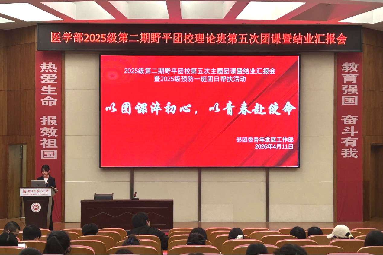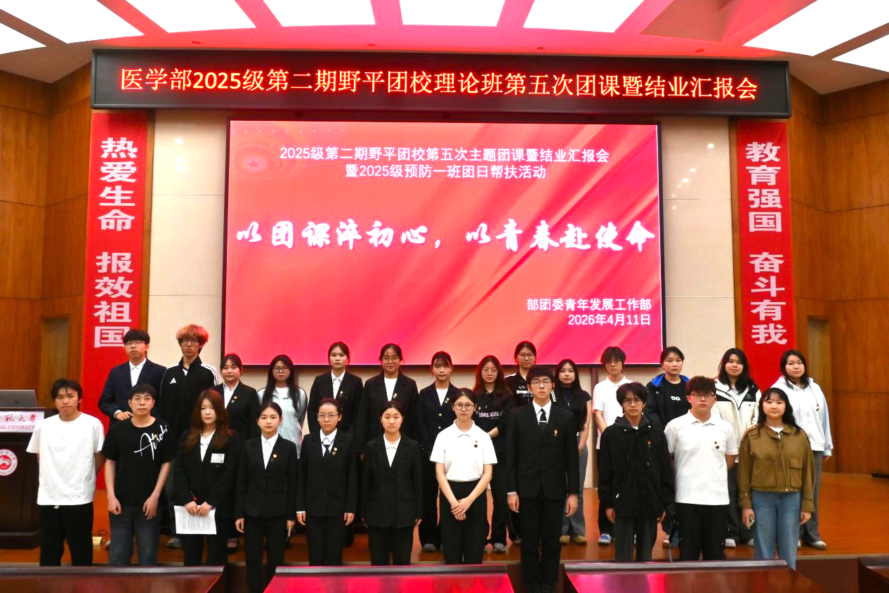 4月11日,WilliamHill(威廉希尔)官网团委青年发展工作部在仁医楼学术报告厅开展2025级第二期野平团校“以团课淬初心,以青春赴使命”主题团课暨结业汇报。此次团课旨在持续深化习近平新时代中国特色社会主义思想学习,强化团员思想引领。团校全体学员共同参加此次活动。