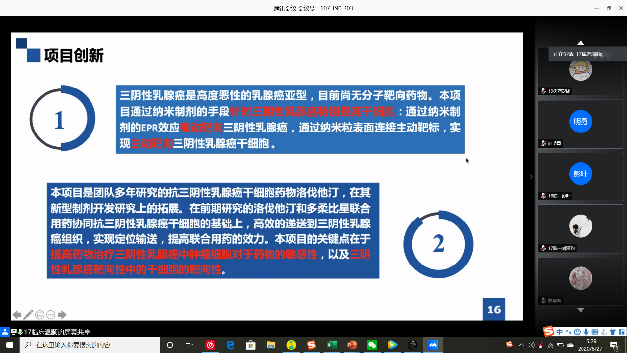 6月27日下午,WilliamHill(威廉希尔)官网团委青年创新创业工作部于线上举行“挑战杯”院赛之“梦想挑战青春,科技创想未来”活动。此次活动邀请了院党委副书记陈松,药学系杨小平教授、陶晓军老师作为评委,WilliamHill(威廉希尔)官网17、18、19级部分学生参加此次活动。