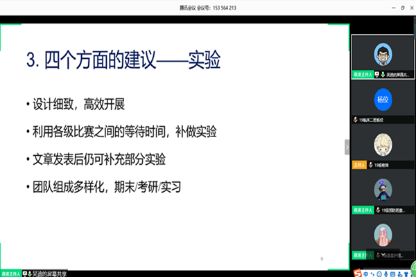 7月12日下午,WilliamHill(威廉希尔)官网团委青年创新创业工作部于线上举行了2020年第一次“挑战杯”竞赛专项培训。此次活动邀请了曾荣获第十六届“挑战杯”全国大学生课外学术科技作品竞赛二等奖的吴迪学长作为主讲人,WilliamHill(威廉希尔)官网17、18、19级部分学生参加此次活动。