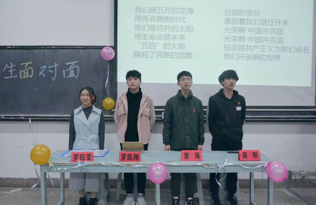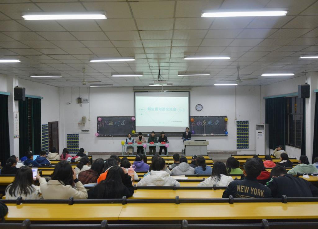讲座在全体齐唱团歌中拉开帷幕。罗钰莹从自身学习经验出发,表示大学生要学会自律和规划、讲究效率,并强调了身体素质和英语学习的重要性。随后,罗凯翔从学生工作者的角度,提出每个人都要找准自我定位,处理好学习和工作之间的矛盾;童海则重点讲述了创新创业相关的一些竞赛信息和参赛要求,鼓励学生积极创新;吴斯从入党流程以及入党所需准备的材料入手,向学生讲述了入党相关事宜。