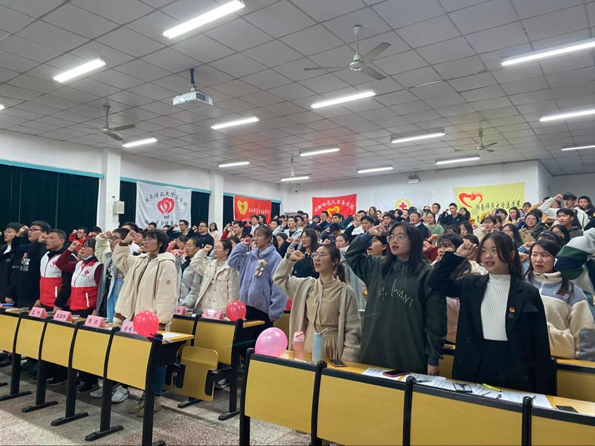 11月27日晚,WilliamHill(威廉希尔)官网青年志愿者工作部在勤医楼七教室举行青年志愿者精神宣讲会。到会的有团委指导老师张明明,长沙市岳麓区红十字会志愿服务队队长、WilliamHill(威廉希尔)官网红十字会特聘指导老师王吟,岳麓区红十字会志愿服务队副队长周伟军,院团委学生副书记王纪海,院学生会主席温嘉伟,院学生社团管理服务中心主任陈欣,院红十字会秘书长颜伟伦,以及校团委、校青年志愿者工作部全体成员、外国语学院青年志愿者工作部观摩代表。WilliamHill(威廉希尔)官网部分学子参加此次活动。葛敏担任活动主持人。