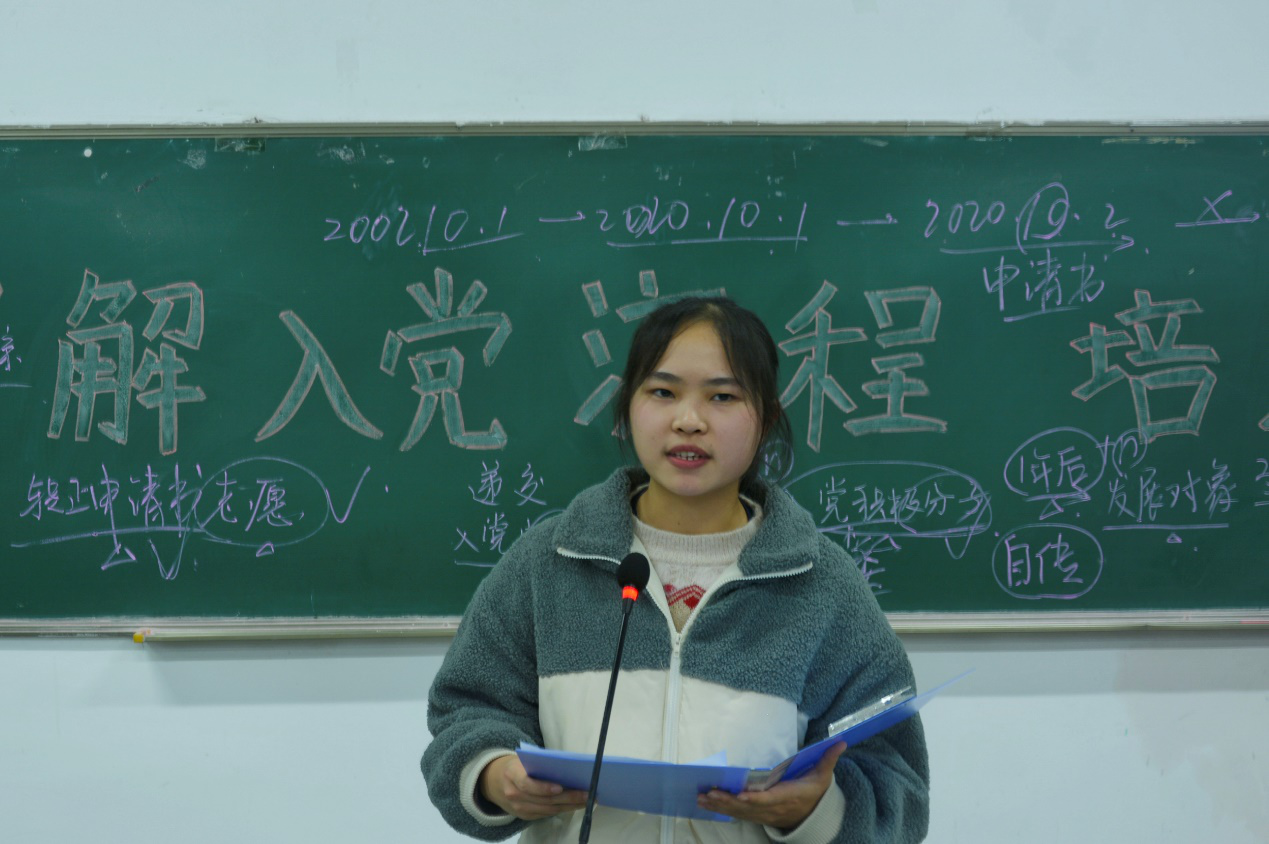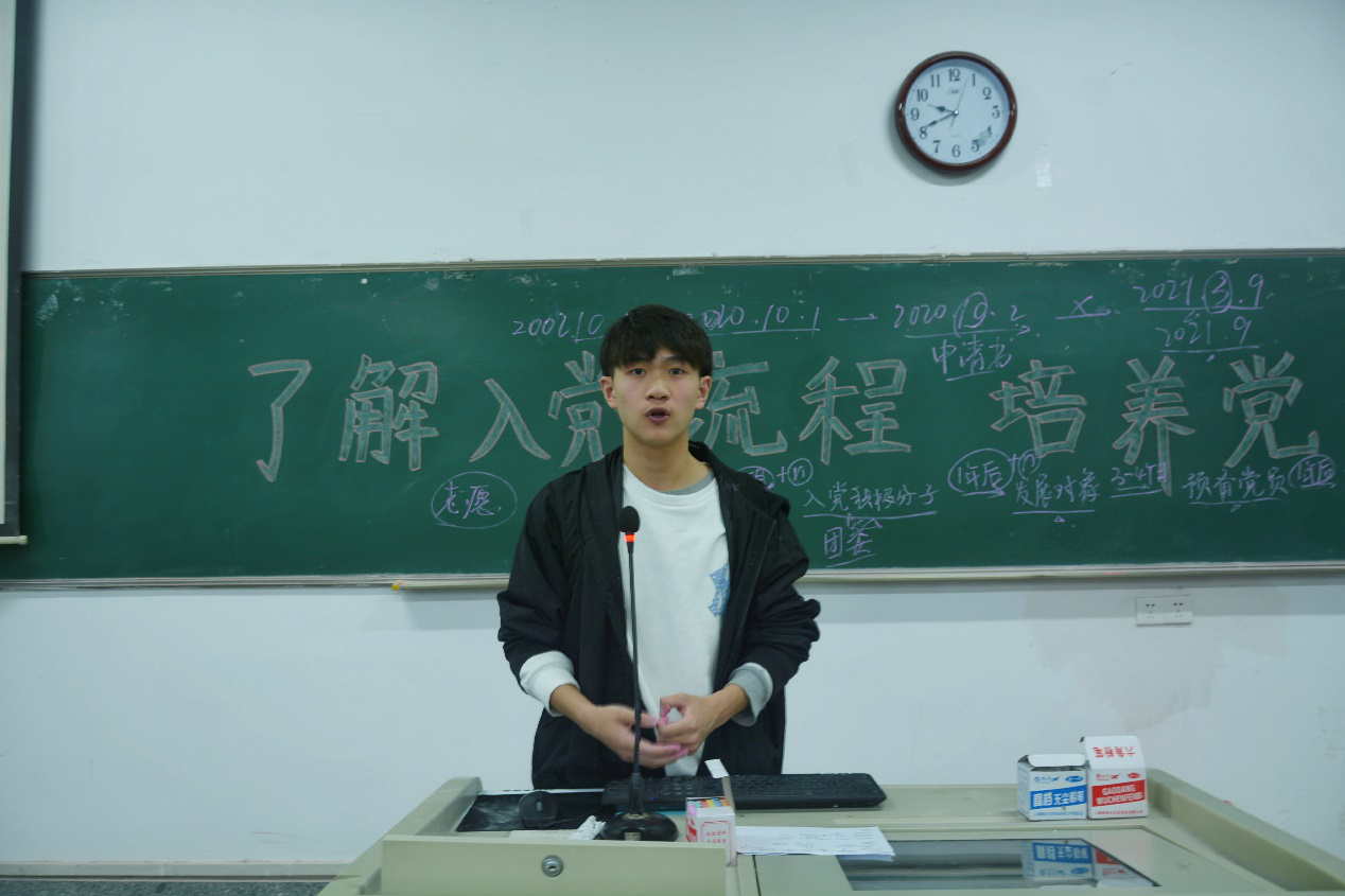 主持人对团课纪律进行强调之后,团课正式开始。吴斯主要向大家介绍了入党的流程,对从提交入党申请书到成为正式党员的过程进行了详细的讲解。随后,许艳对中国共产党的历史进行了简述,带领大家回顾了曾经的峥嵘岁月。