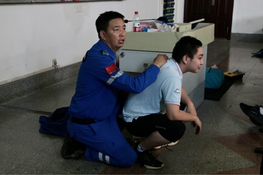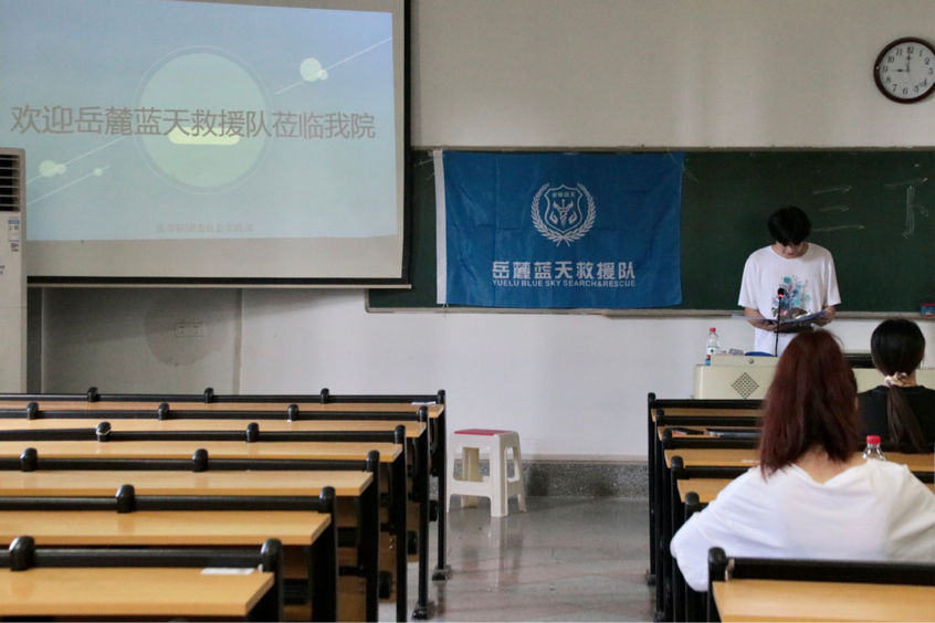 岳麓蓝天救援队队长谭章简要介绍救援队的救援事迹以及专业领域,稍后为同学们开展急救培训。从急救的职责和基础知识出发,为我们进行了心肺复苏、外出血、烫伤、电击、使用止血带等的基础知识培训。对于环境急症、内科急症、创伤急症,谭章和陈玲玲介绍了几种常见急症并给出解决方法,如被蛇咬伤应使用肥皂水冲洗伤口等。