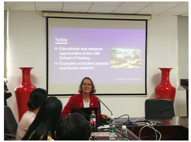 Basia Belza教授的讲座以华盛顿大学护理学院的教育和研究项目为中心,介绍了华盛顿大学护理专业的教学情况、特别是护理本科教育和博士教育项目,并列举了华盛顿大学护理教师和学生进行的多项护理科学研究。Basia Belza 教授指出华盛顿大学护理学院通过提供终身学习机会、进行创新性的护理研究,对全世界的卫生健康事业产生影响。