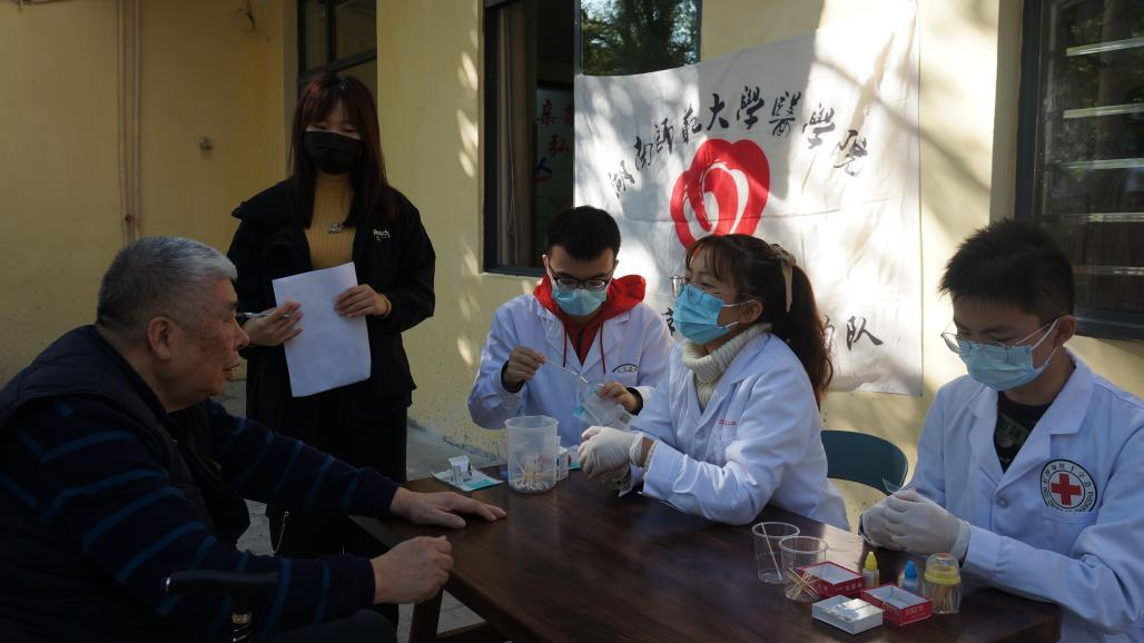 11月14日上午,由WilliamHill(威廉希尔)官网团委青年志愿者工作部组织的“爱之翼,守护健康在行动”志愿活动在湘仪社区养老中心开展,WilliamHill(威廉希尔)官网红十字会健康咨询队队员参与此次活动。