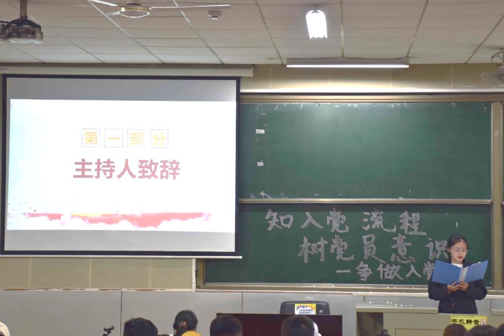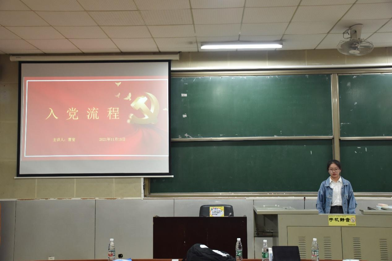 随后,曹莹通过一段视频为学员讲解入党流程及入党相关注意事项。她为团校成员介绍了入党的五个阶段,分别为入党申请人初步培养阶段、入党积极分子培养教育阶段、确定发展党员阶段、接收预备党员阶段、预备党员考察转正阶段。她强调入党是光荣而严肃的事情,学员们都应该认真对待。最后,主持人致结束词,宣布活动结束。