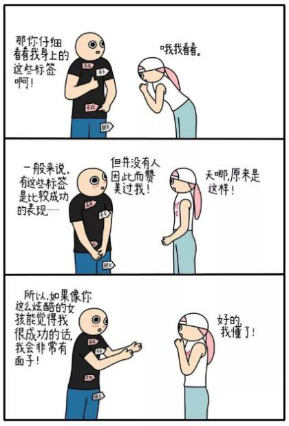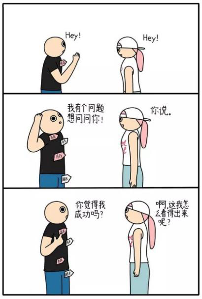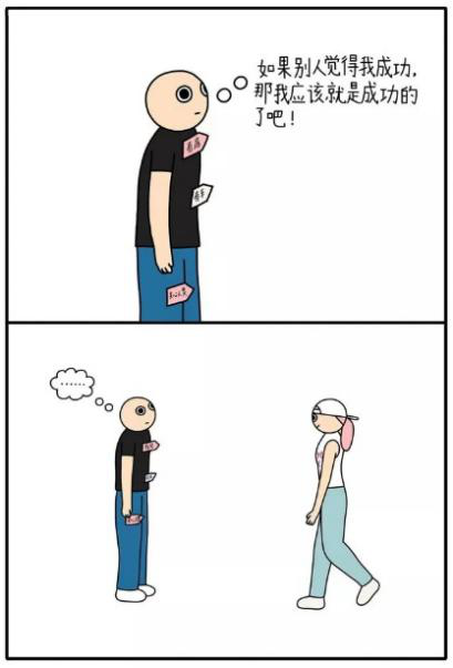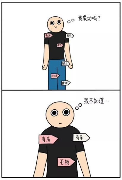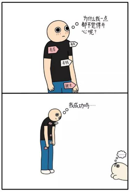 像漫画中的小男孩一样,很多人不断地追问自己或者别人:我成功吗?可当自己得到答案时好像又并不是那么开心。其原因在于成功的含义并不仅仅包含物质方面而已,我们不应该把物质作为衡量成功的唯一标准。